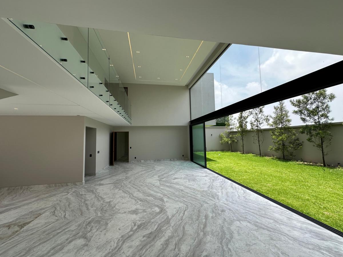 Situada en una calle privada con sistema de monitoreo y botón de pánico, esta residencia te ofrece la máxima seguridad y tranquilidad. Desde el primer momento, destacan sus fino mármol italiano, carpintería en nogal y cristales templados, detalles que elevan cada espacio a un nivel superior. La casa cuenta con: amplia estancia con doble altura y vista espectacular al jardín, 4 recámaras, cada una con vestidor, baño y balcón, Sala de TV, Estudio, Cocina Totalmente Equipada, Antecomedor, 2 cuartos de servicio y 2 cuartos de lavado con área de tendido, Salón de fiestas de 120m2 con baños para hombres y mujeres, Garage para 8 autos grandes. En el exterior disfrutarás de un magnífico jardín de 200m2, ideal para reuniones y momentos de relajación. Además, una terraza frontal de 80m2 te permitirá comenzar cada mañana con una vista inigualable.