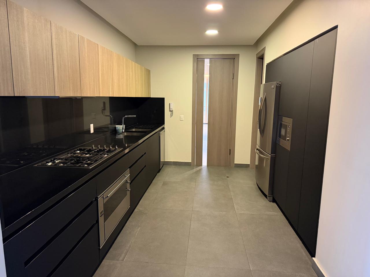 Amplia estancia con salida a hermoso balcón, 3 recámaras, cada una con baño completo (la principal con vestidor), baño de visitas, cocina cerrada, moderna y extra amplia, área de lavado, cuarto de servicio, área de lavado, amplia bodega, 2 estacionamientos independientes y para tu máxima comodidad y confort el departamento cuenta con aire acondicionado y calefacción. El edificio cuenta con 2 elevadores (principal y de servicio) que conectan desde el estacionamiento hasta el roof garden común donde podrás disfrutar amenidades excepcionales: vista inigualable, barra de asador, jacuzzi, sauna y vapor y baño completo.