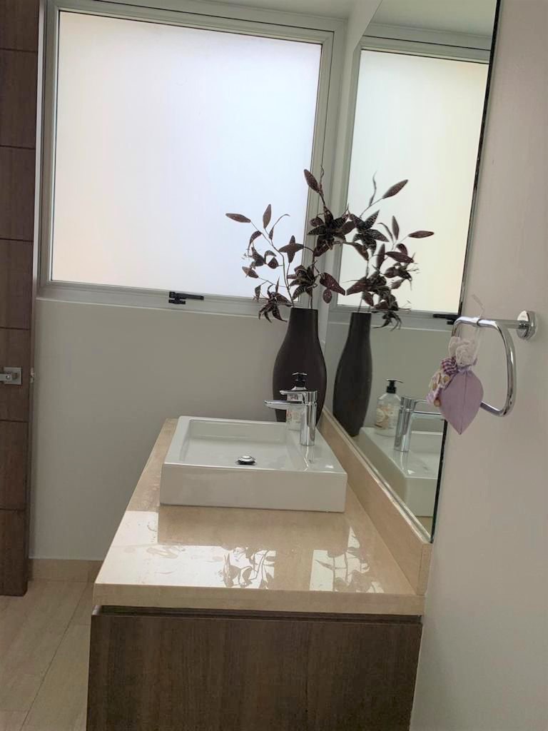 Cuenta con baño de visitas, cocina integral abierta con desayunador y cubiertas de granito, 3 recámaras: la principal con baño privado y vestidor, y dos secundarias que comparten baño. Además, incluye estudio, closet de blancos, cuarto de servicio, área de lavado y 2 estacionamientos techados. El desarrollo ofrece amenidades de primer nivel: alberca techada, Gimnasio totalmente equipado, vapor, sauna y regaderas, salón de usos múltiples para hasta 150 personas, canchas de pádel, hermosos jardines, juegos infantiles, vigilancia, accesos controlados, circuito cerrado de seguridad. No se aceptan mascotas.