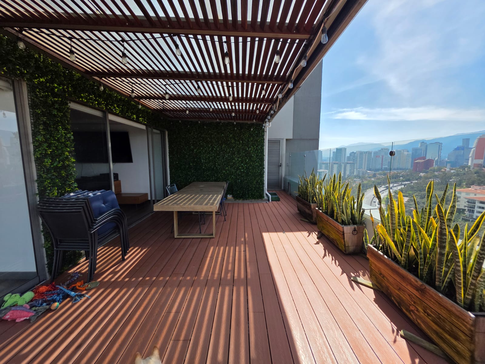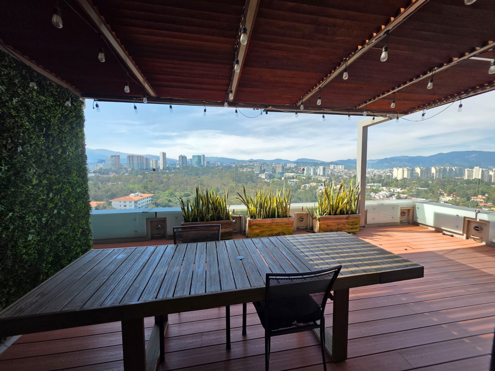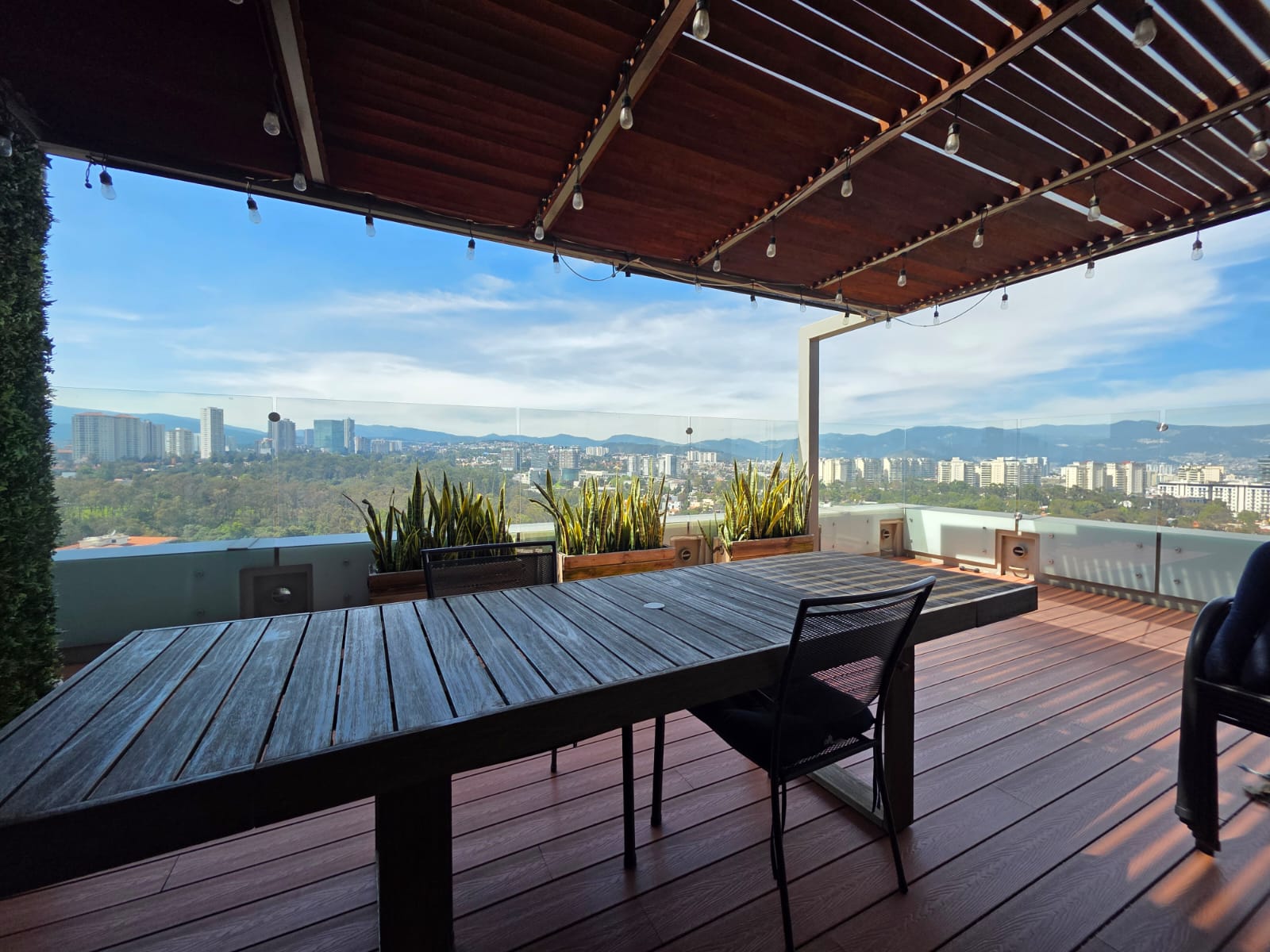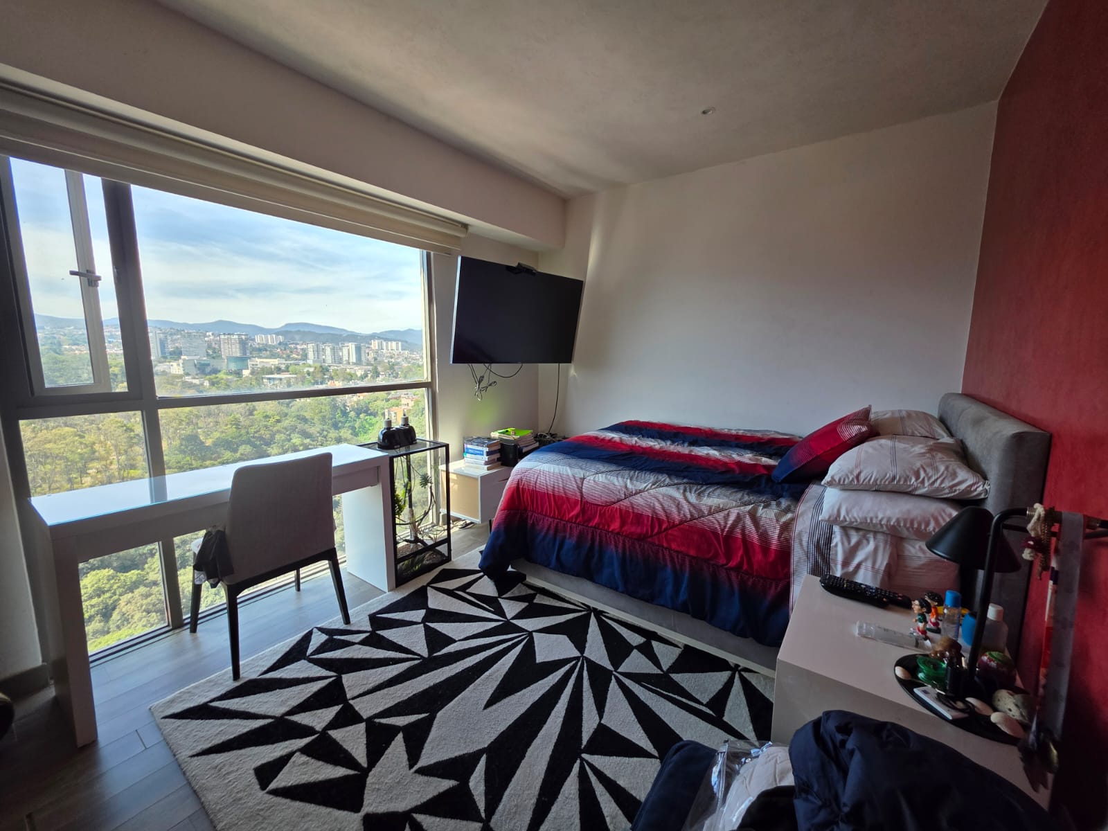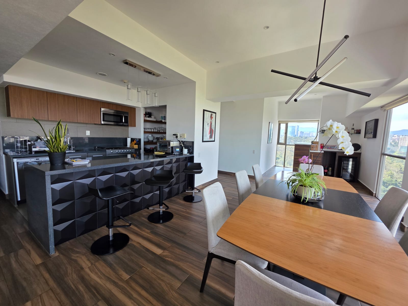 Características: 3 recámaras, 3 baños completos, 4 lugares de estacionamiento, Concepto de áreas abiertas en: la estancia (sala, comedor, bar), la cocina totalmente equipada con desayunador. Sala de T.V., genial terraza de 30 m2 para las reuniones familiares, cuarto de servicio con baño, área de lavandería, Bodega, Elevador, Vigilancia 24 horas, con grandes amenidades como: Alberca, gimnasio, salón de fiestas, canchas de padel, con acceso inmediato a santa fe donde puedes encontrar restaurantes, boutiques, parques y zonas corporativas.